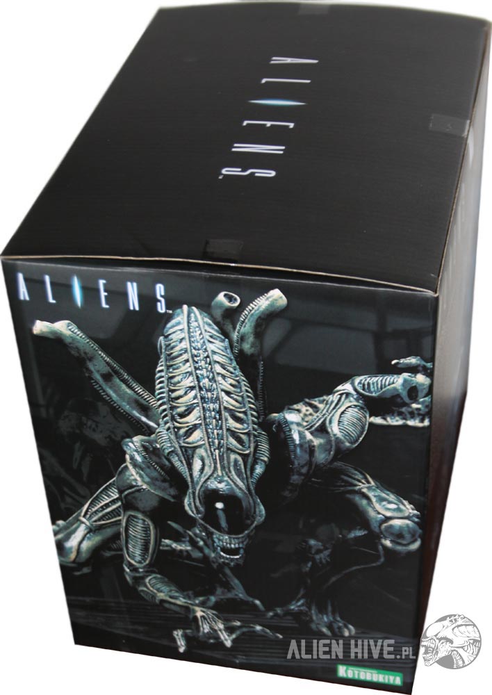 Pudełko robi świetne wrażenie, jakbym kupił ekskluzywną rzeźbę za półtora tysiąca złotych. Karton opakowania jest gruby i wytrzymały oraz zdobiony rewelacyjnie wyglądającymi zdjęciami zakupionej statuetki, zrobionymi pod różnym kątem. Nie zabrakło również logotypu „Aliens”. Takie pudełko aż żal rozpakowywać i zapewniam, że nigdy nie wyrzucicie je na makulaturę.