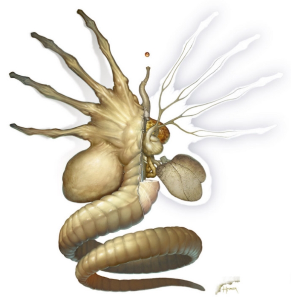 Poniżej prezentuję graficzną propozycję wewnętrznej budowy twarzołapa oraz diagram wyjaśniający sposób intubacji ofiary (kliknij na obrazek aby powiększyć).
